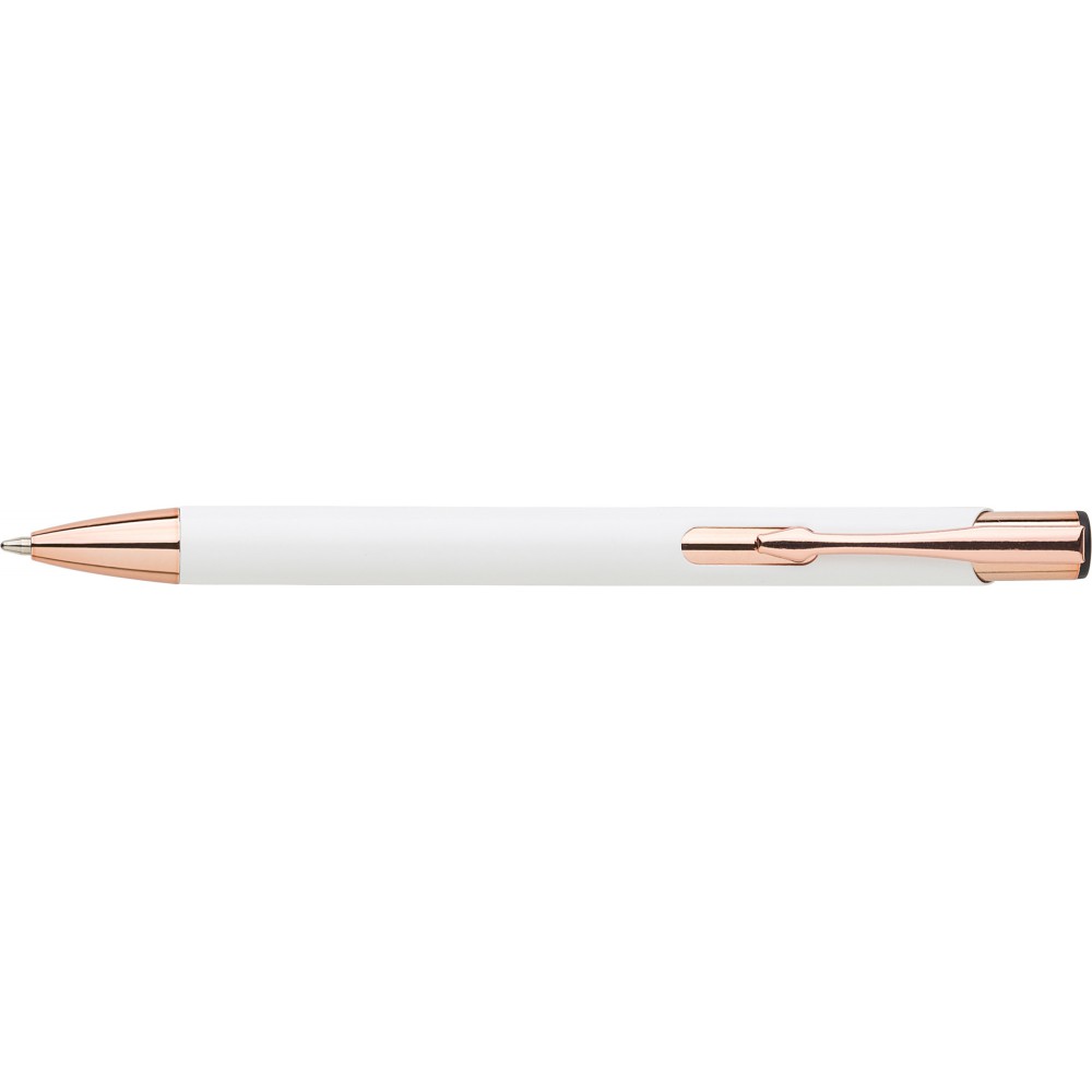 Pix metalic finisaj mat cu detalii auriu-roz. Mina albastra. Designul gravat va fi de culoare argintie. Personalizare: gravura, tampografie, imprimare UV.