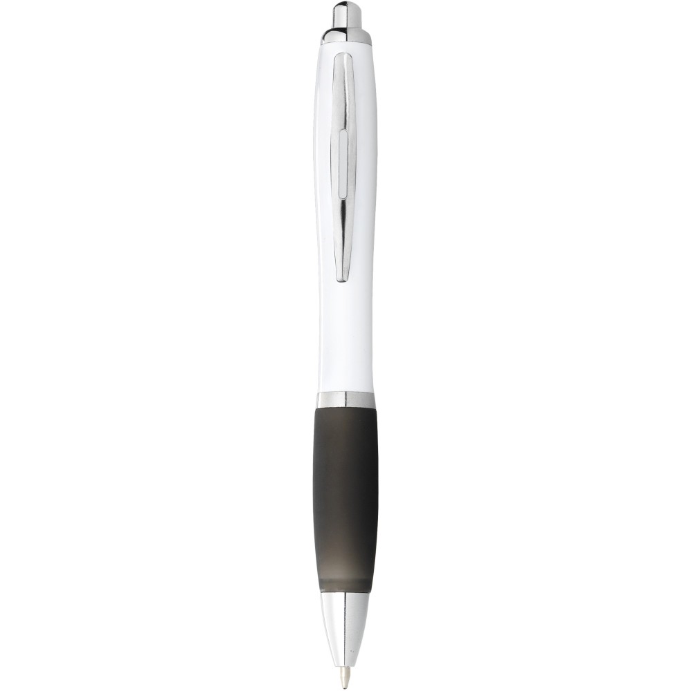 Nash ballpoint pen with white barrel and coloured grip, White,Lime