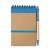 Notes A6 cu spirala; inchidere cu elastic; hartie reciclata; pix biodegradabil; Mina albastra.