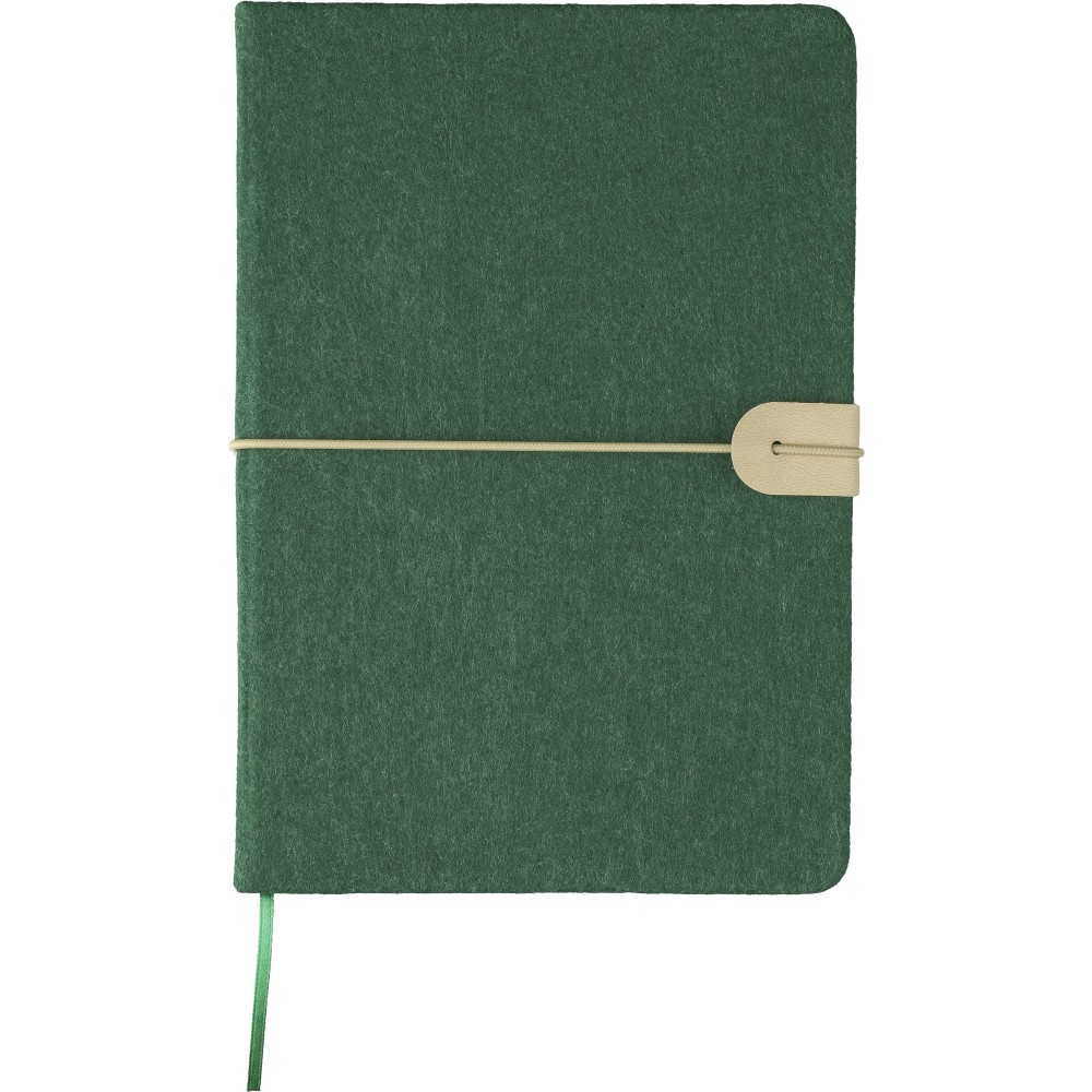 Notes A5 din fetru reciclat, banda elastica si curea de inchidere din PU la exterior. Include semn de carte si 80 de coli de hartie liniata, 70 g/mp. Prezinta cu logo reciclat gravat cu laser pe verso.