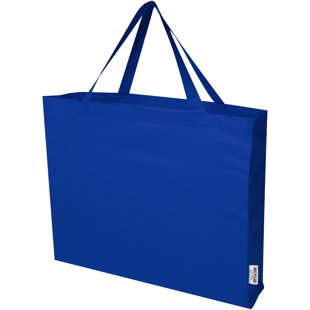 The oversized Odessa tote bag made from 100% GRS recycled cotton is designed for comfortable carrying with its 30 cm long shoulder handles and extra large main gusset compartment. Whether it is to carry around heavy books or groceries, this bag is designed to cover all needs. Print methods available for this tote bag are also certified, making sure that the entire supply chain is transparent and certified. The 220 g/m2 cotton ensures durability and reliability, giving the bag a resistance of up to 10 kg weight. Made in India.