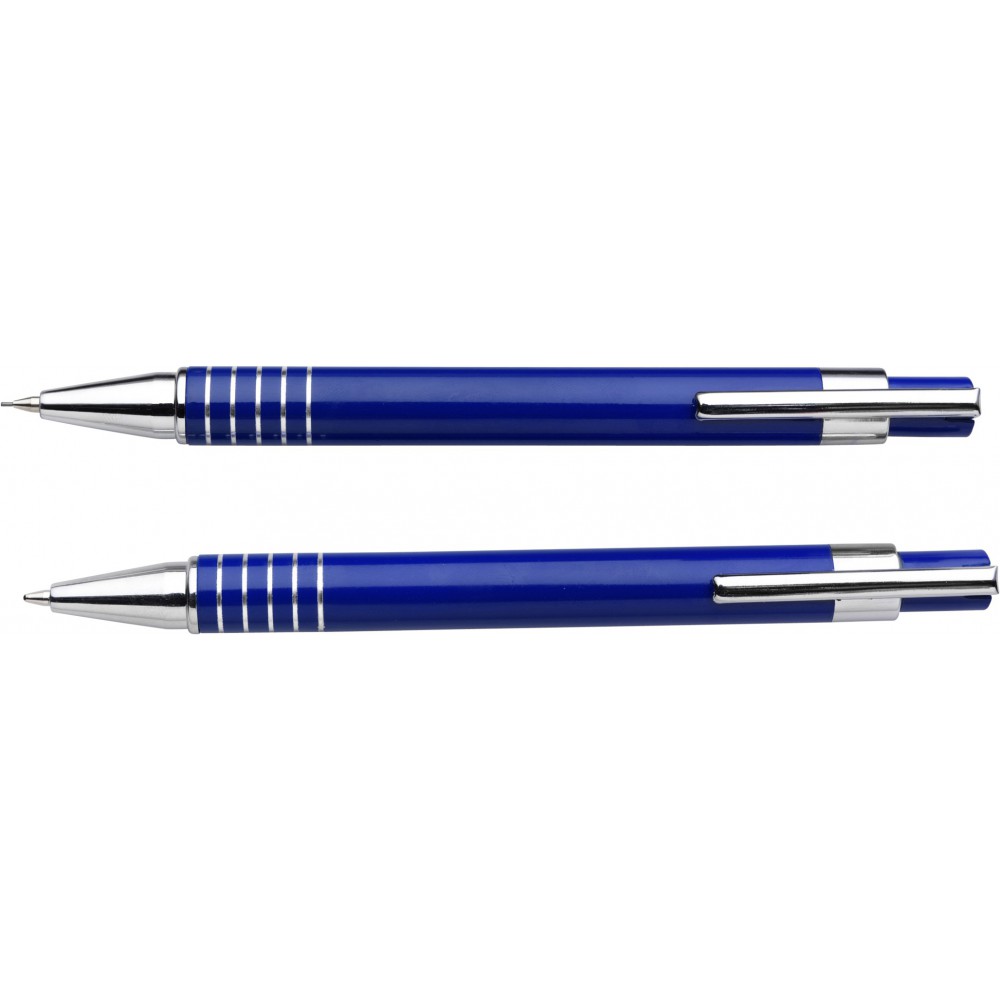 Aluminium writing set consisting of a lacquered ballpen with black ink and a mechanical pencil. Packaged in a metal pen case. Provided with German Dokumental Ink.
