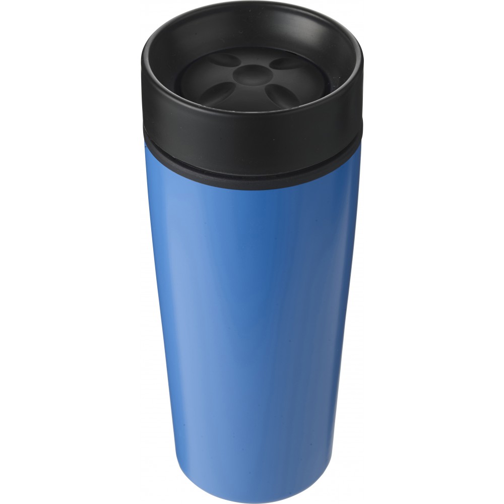 Cana termoizolanta cu pereti dubli, 450 ml. Interior plastic, exterior inox. Se livreaza in cutie. Personalizare recomandata: gravura laser, tampografie